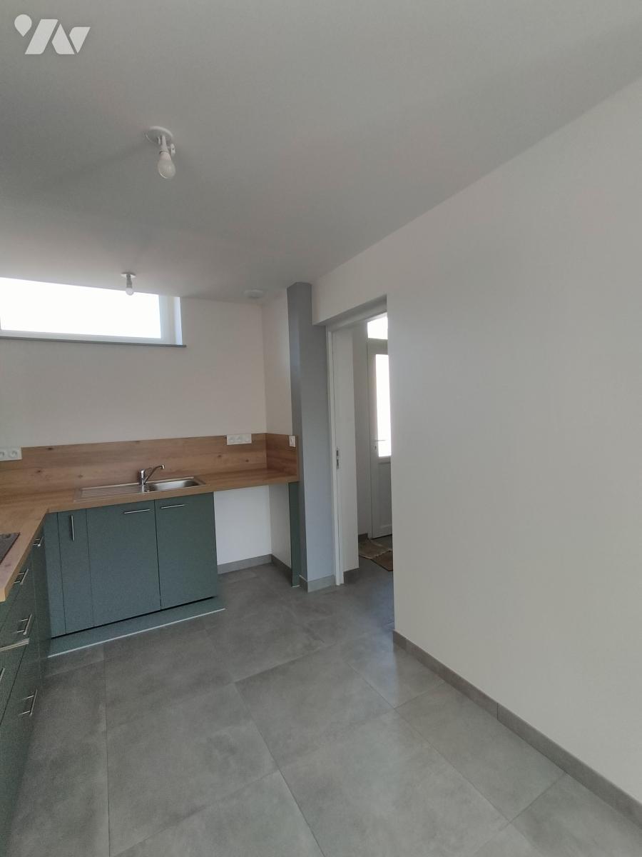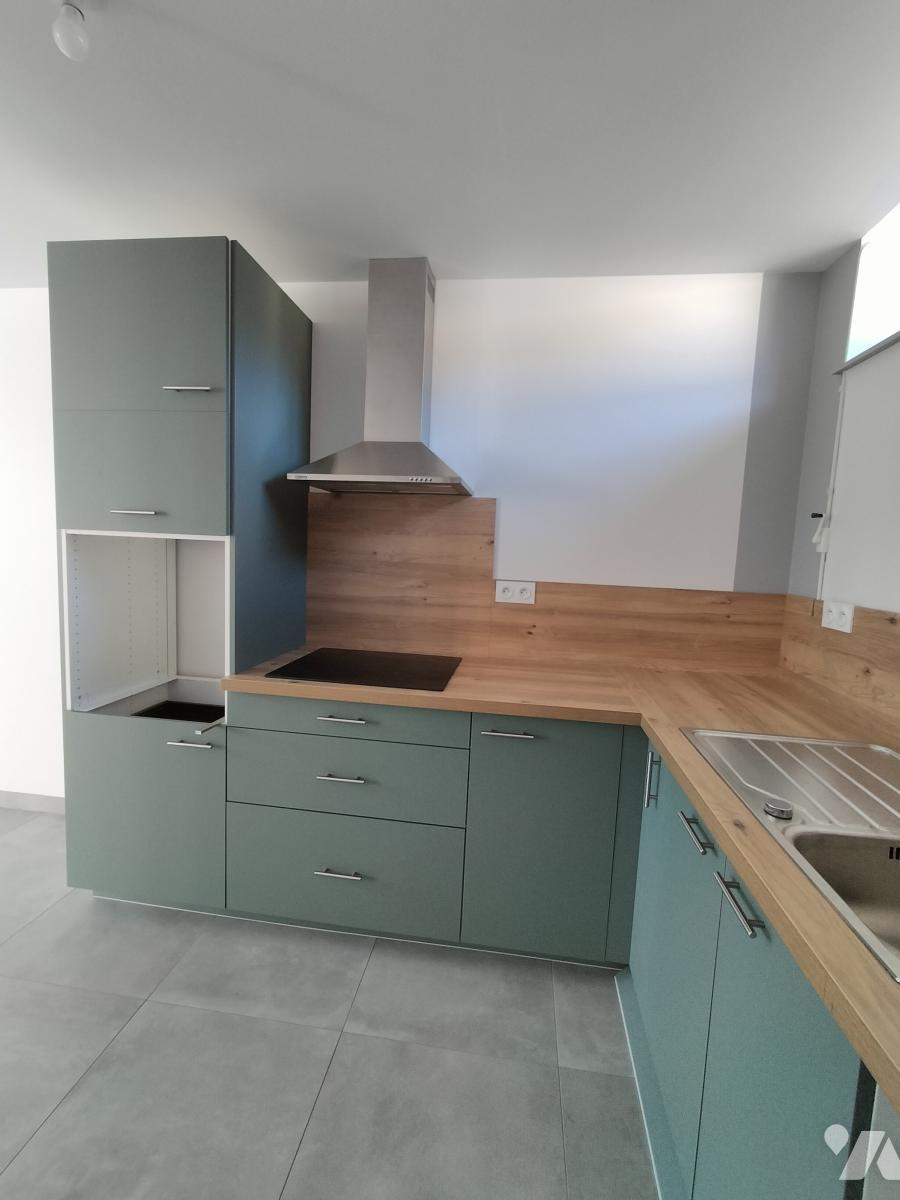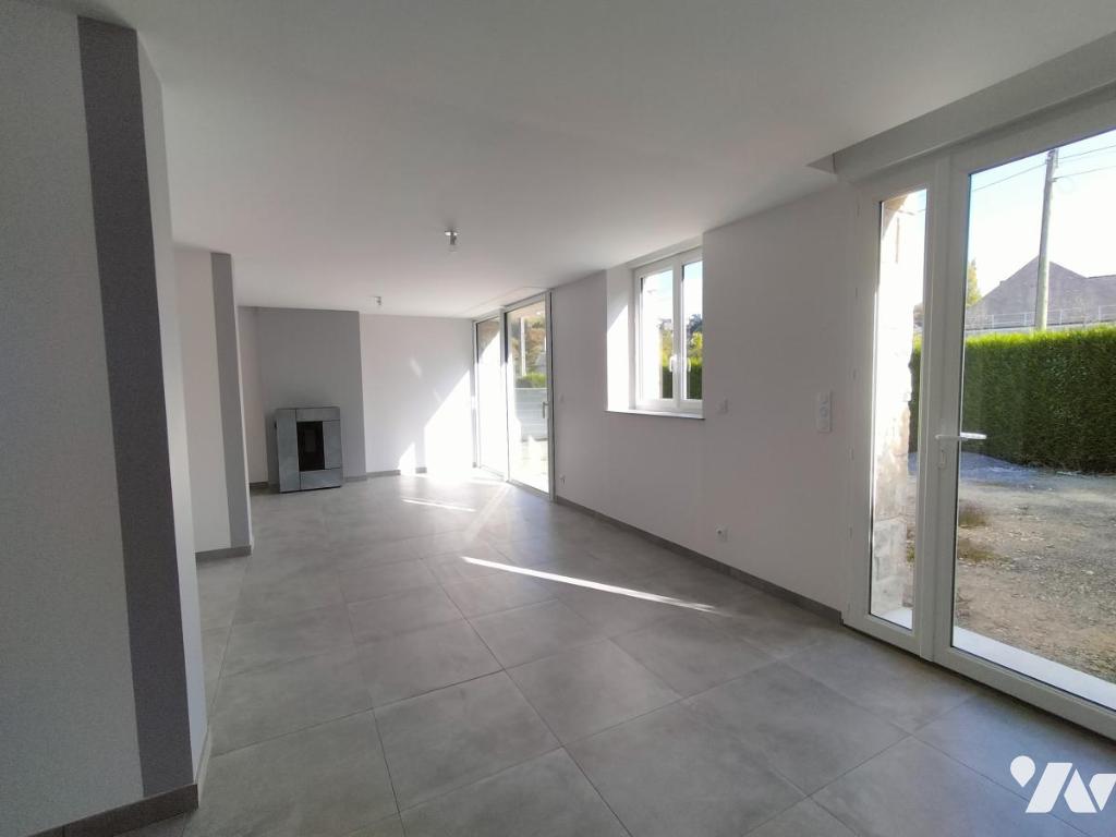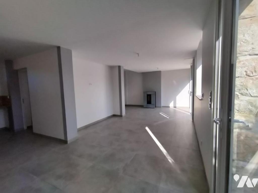 Cuisine ouverte, salon-séjour avec poêle à granule,